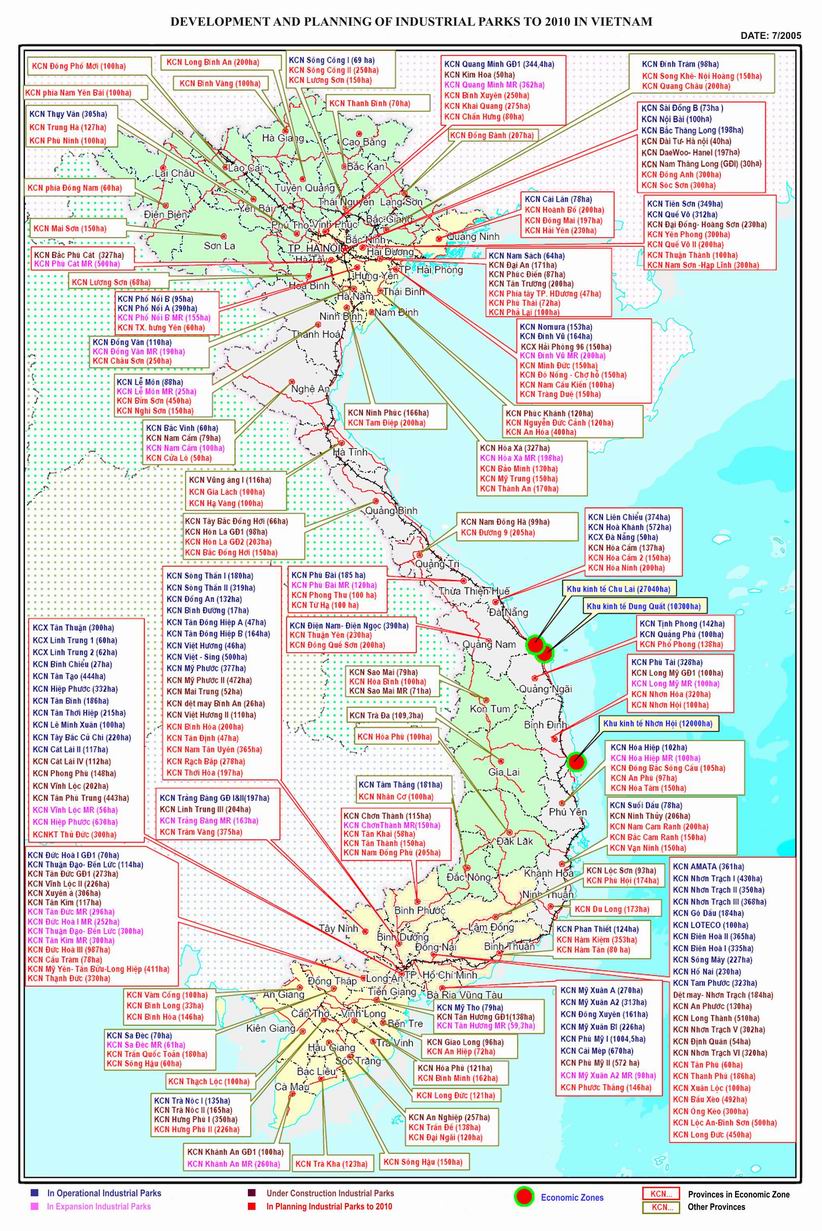 根據統計,至2013年為止,越南全國共有289個工業區,總面積約81,000公頃。